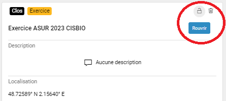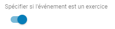 3) L'évènement est créé, par défaut, dans le cadre d'un exercice. Dans le cas d'une crise réelle, le switch doit être basculé.