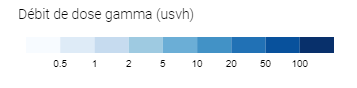 Appliqué aux seules mesures de débit d'équivalent de dose, ce mode de représentation permet de classifier les points de prélèvements par classe de valeurs. Chaque classe est représentée par une couleur dans une échelle de couleur unique. Par exemple, les échelles possibles sont :