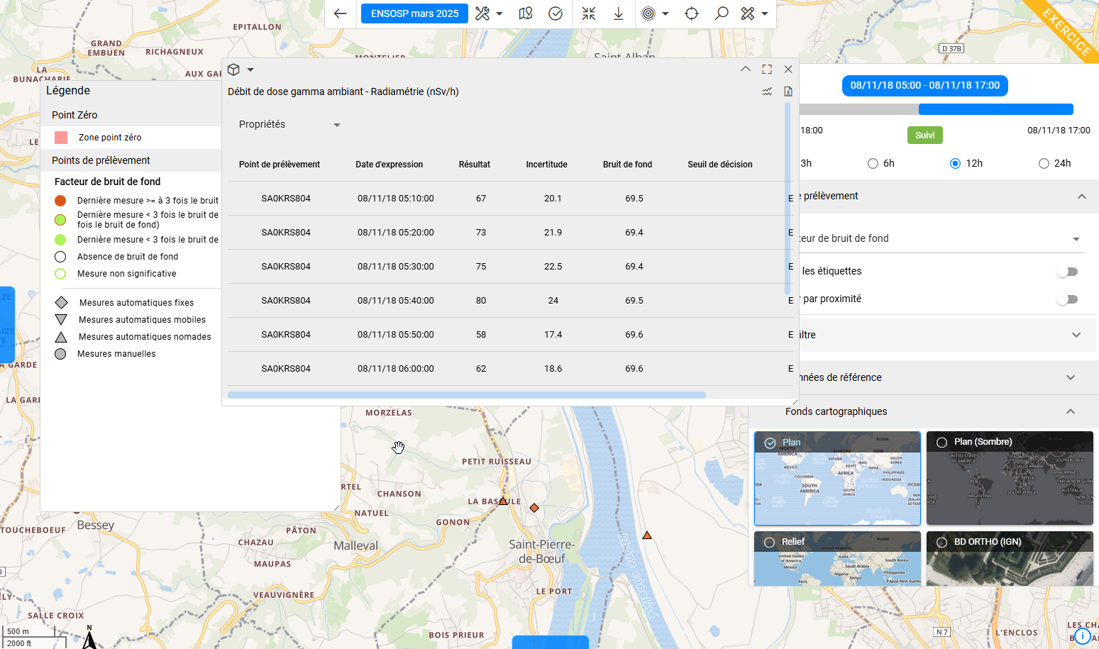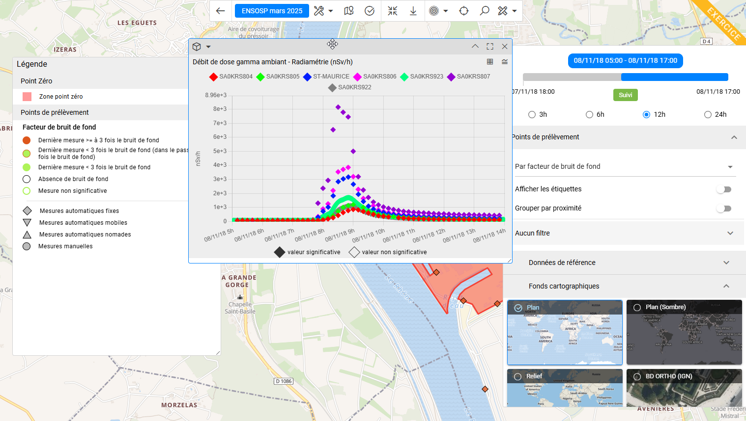 Après paramétrage de la profondeur temporelle (dan le menu principal), l'utilisateur accède à ces deux modes de consultation par simple clic sur un point de prélèvement ou par sélection au lasso de plusieurs points.