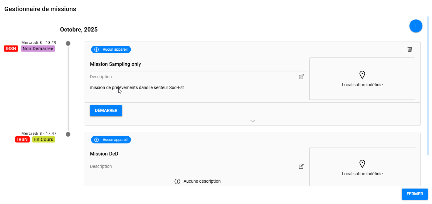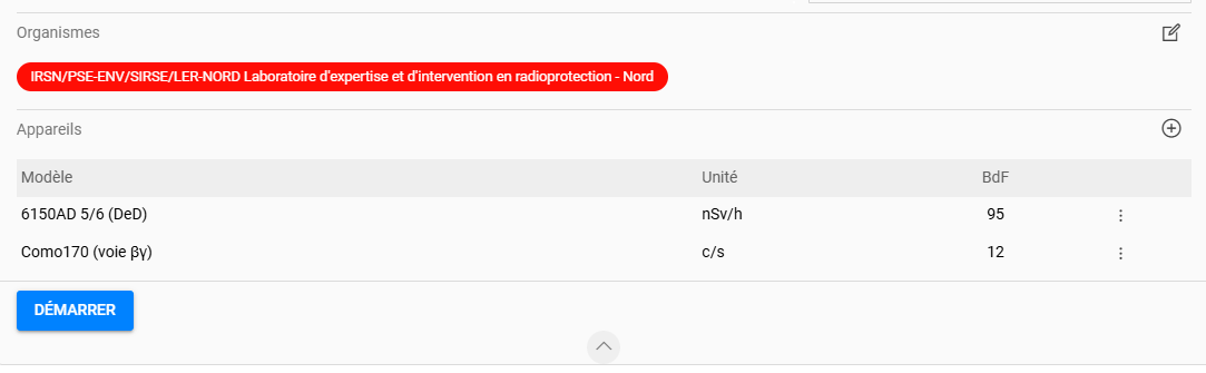 Dans une mission, si aucun appareil n'est défini, il n'y aura pas d'opérations de mesures directes associées sur les points créés. Il sera cependant possible de créer des opérations de prélèvements, de dépôt de balise nomade ou de mesures de Spectro Gamma Insitu.